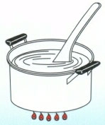 (3)鍋に(2)を入れ、中火で底から掻き混ぜながら沸騰させ、弱火にして